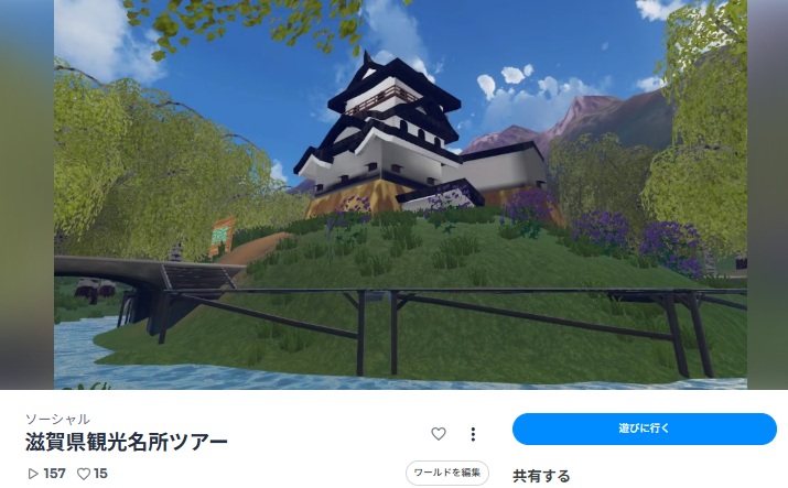 25Feb2026 滋賀県観光名所メタバース完成しました! お知らせ 地域社会貢献事業 社会参画支援事業 滋賀県の名所ツアーができる「メタバースin滋賀」の会場を製作しました。 会場はこちら https://cluster.mu/w/d408e5ff-97b5-4447-9198-7dd1d3d6b9e8 (メタバース)《3周年》1月の遠足 不思議の国children村で♪ 国際女性デーイベントへ出店 最近の活動実績一覧活動実績一覧 国際女性デーイベントへ出店 2026.03.27 (メタバース)《3周年》1月の遠足 不思議の国children村で♪ 2026.01.27 (交流会報告)子どもたちの未来を作る活動を(池袋会場) 2026.01.22 (報告)ウエディング会場でのお仕事体験 2025.12.07 お菓子教室の助手をしました! 2025.12.05